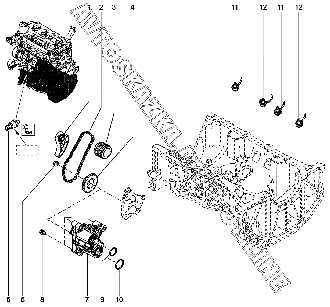 | Название детали: | Цепь привода масляного насоса 150419093R |
