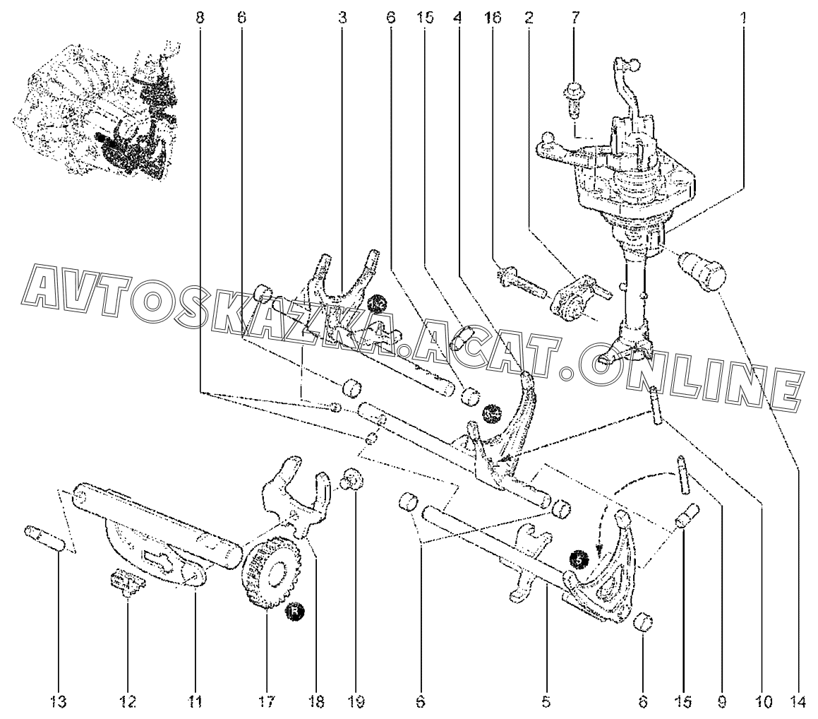 Механизм выбора передач (BVM5) ВАЗ X-Ray (Lada X-Ray, X-Ray Cross)