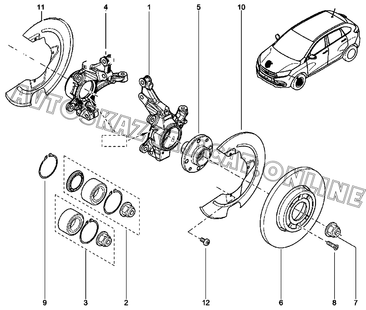 Ступица переднего колеса, диск тормоза ВАЗ X-Ray (Lada X-Ray, X-Ray Cross)