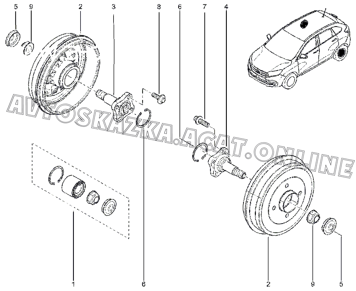 Ступица и барабан заднего тормоза ВАЗ X-Ray (Lada X-Ray, X-Ray Cross)