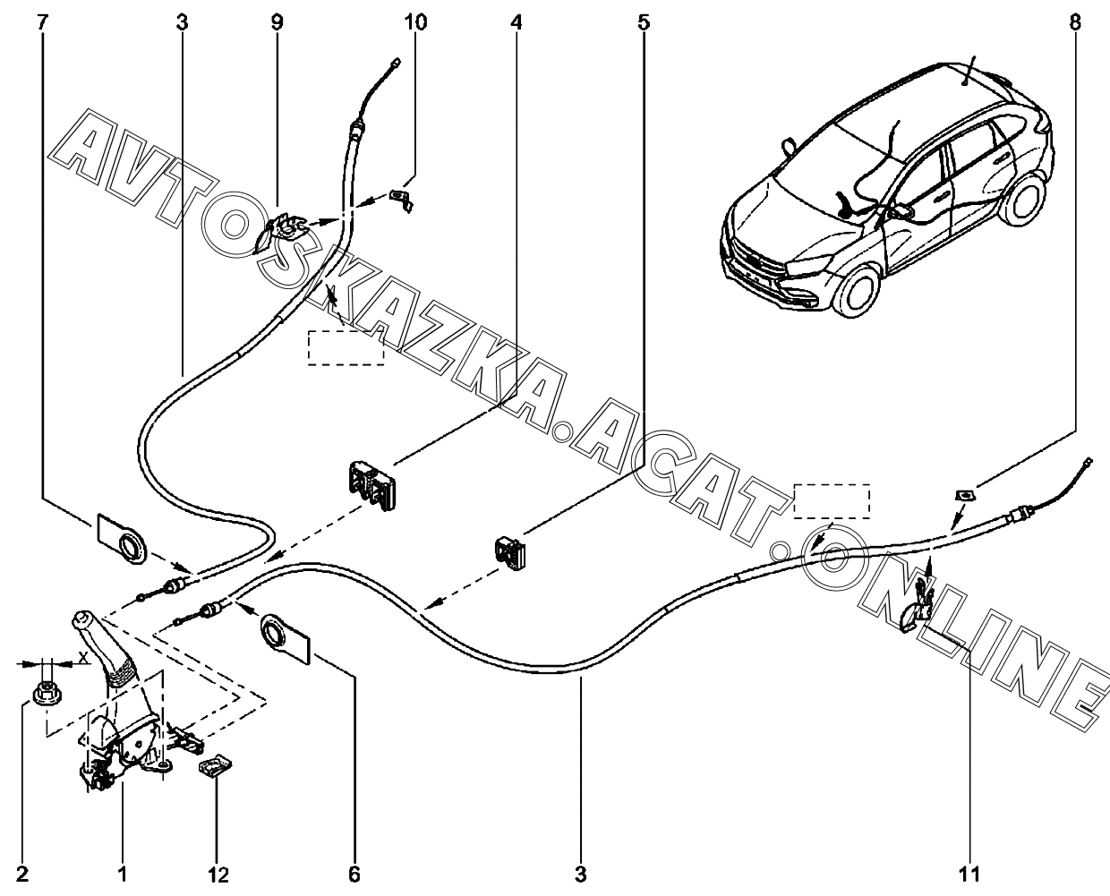 Механизм стояночного тормоза ВАЗ X-Ray (Lada X-Ray, X-Ray Cross)