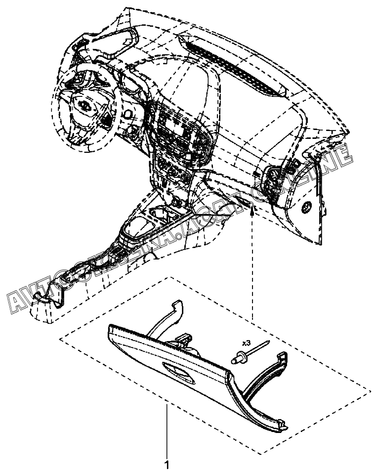 | Название детали: | Крышка вещевого ящика панели приборов в сб. 682525615R |
