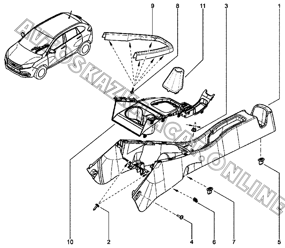 Облицовка тоннеля пола без подлокотника ВАЗ X-Ray (Lada X-Ray, X-Ray Cross)