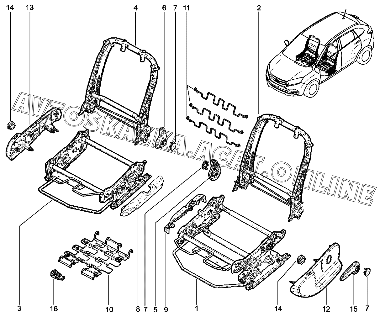 Каркас передних сидений Е1, Е2 ВАЗ X-Ray (Lada X-Ray, X-Ray Cross)