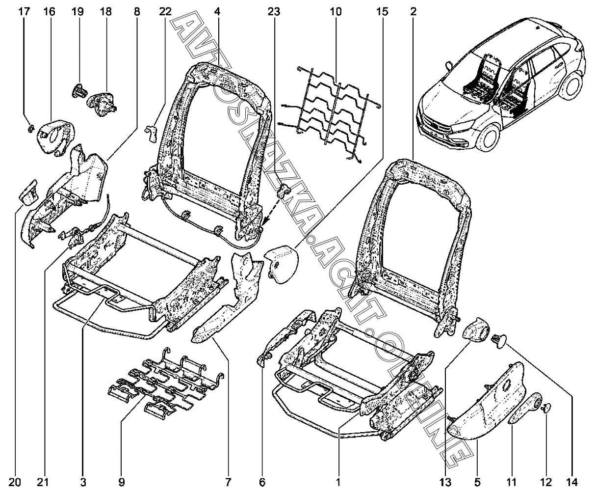 Каркас передних сидений кросс ВАЗ X-Ray (Lada X-Ray, X-Ray Cross)