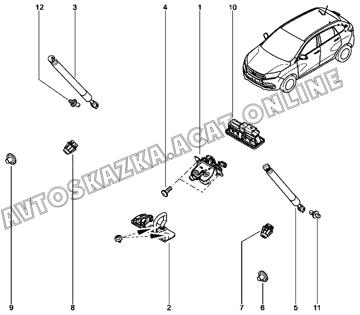 Упоры, замок крышки багажника ВАЗ X-Ray (Lada X-Ray, X-Ray Cross)