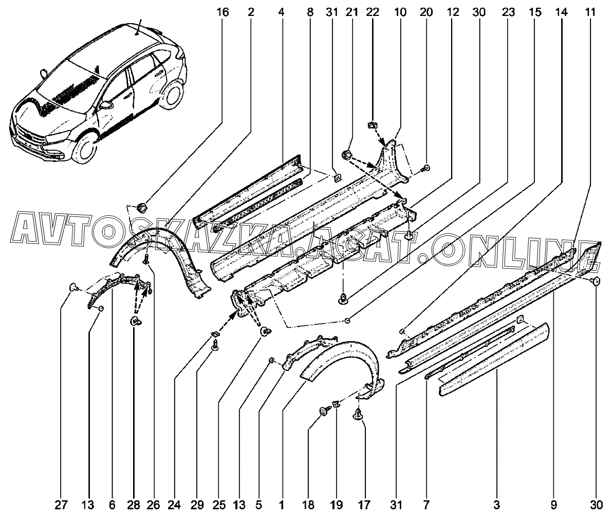 Молдинги ВАЗ X-Ray (Lada X-Ray, X-Ray Cross)