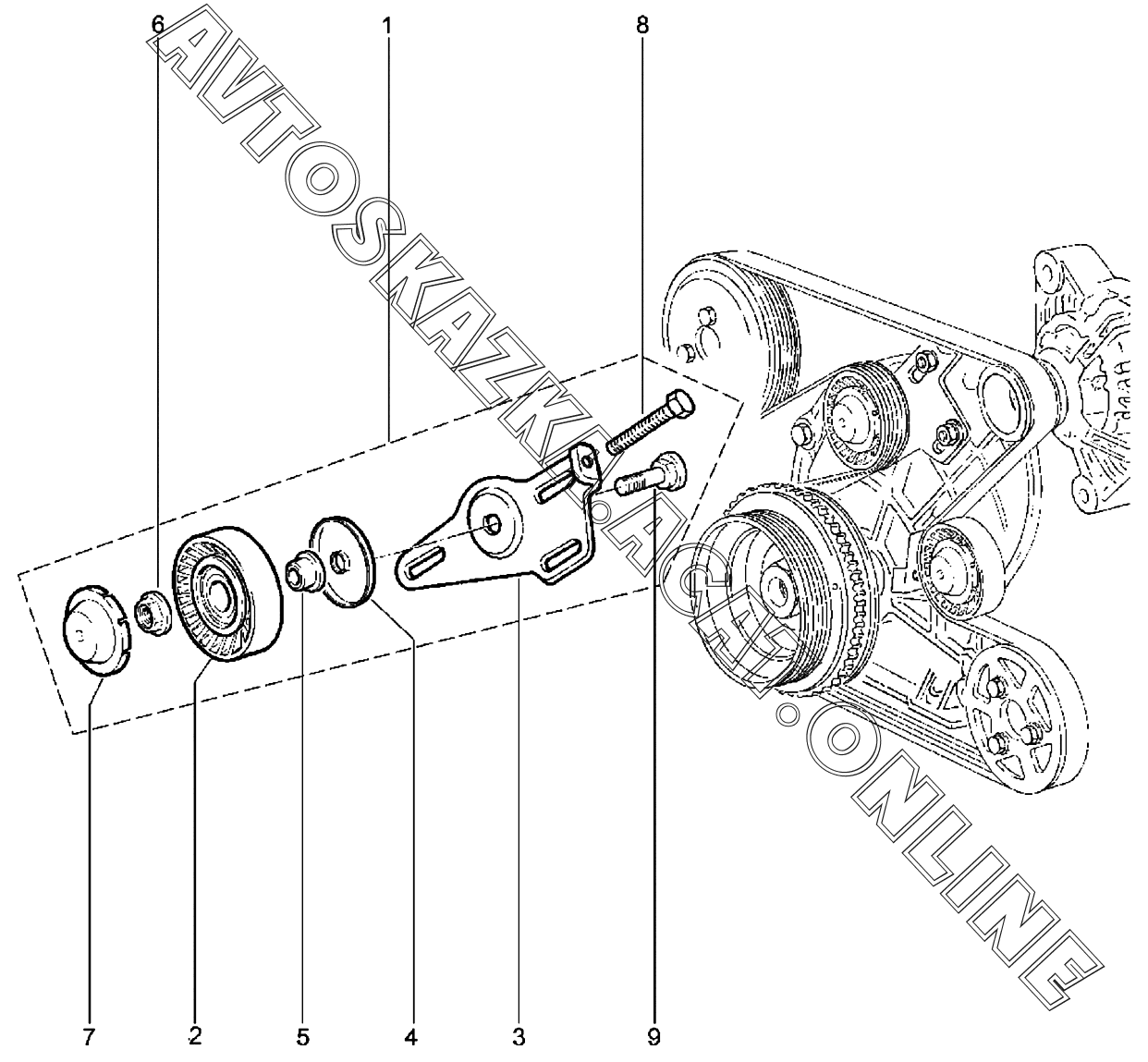 Механизм натяжения ремня вспомогательных агрегатов ВАЗ 2123 Chevrolet Niva (2123 Chevrolet Niva)