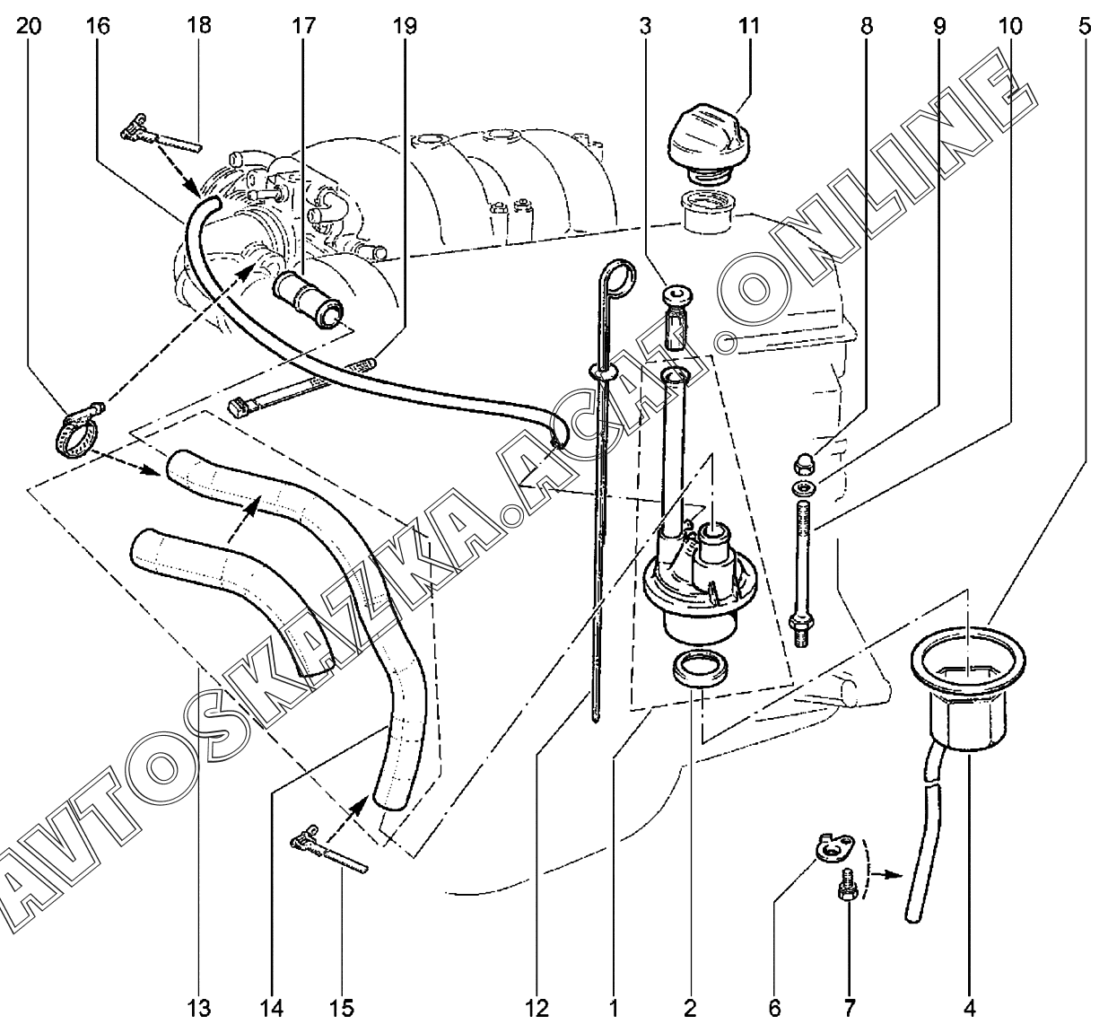 Маслоотделитель, трубки вентиляции картера (до 10.2015) ВАЗ 2123 Chevrolet Niva (2123 Chevrolet Niva)