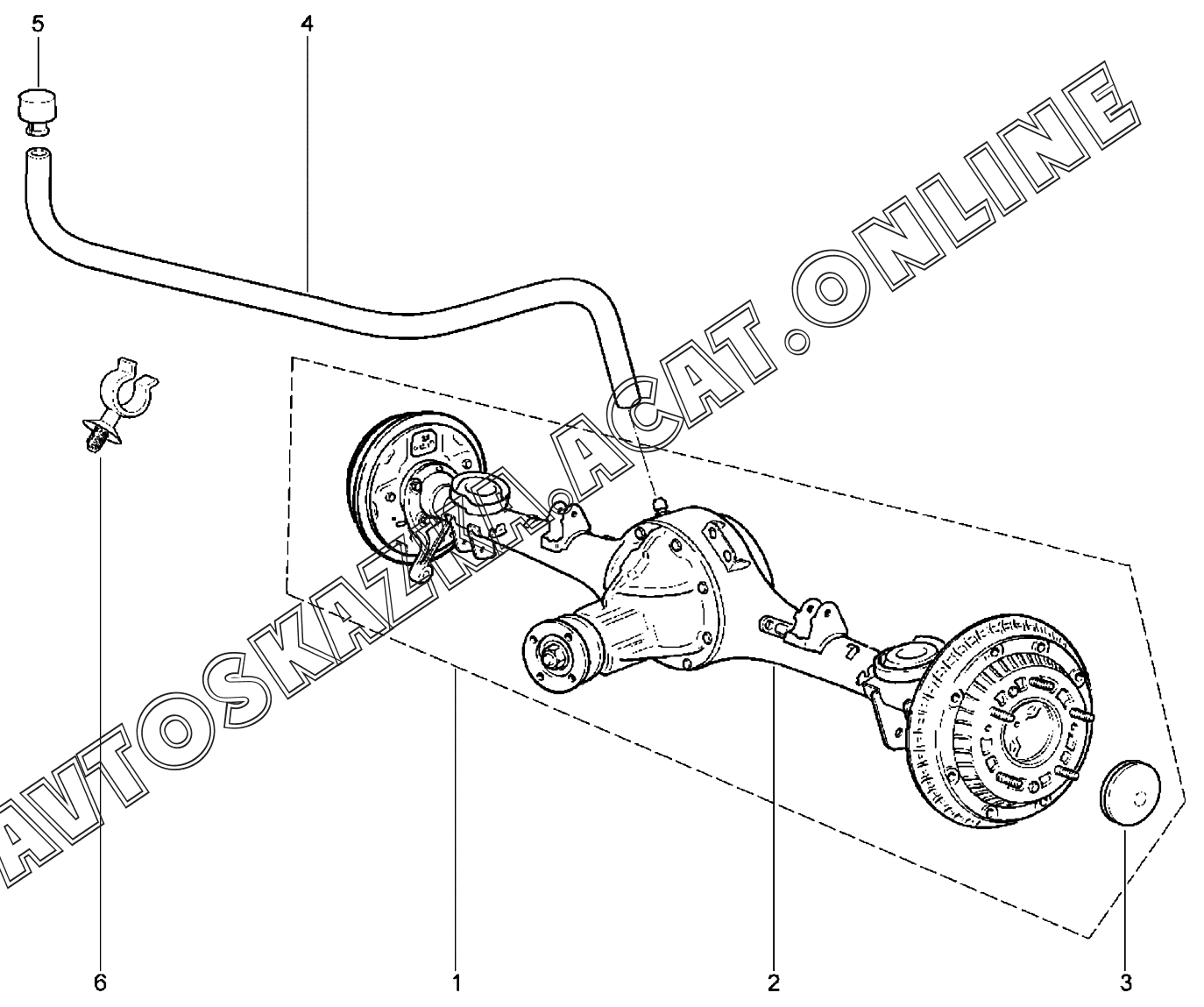 | Название детали: | Мост задний с тормозами и тросом ручного привода тормоза в сб. |