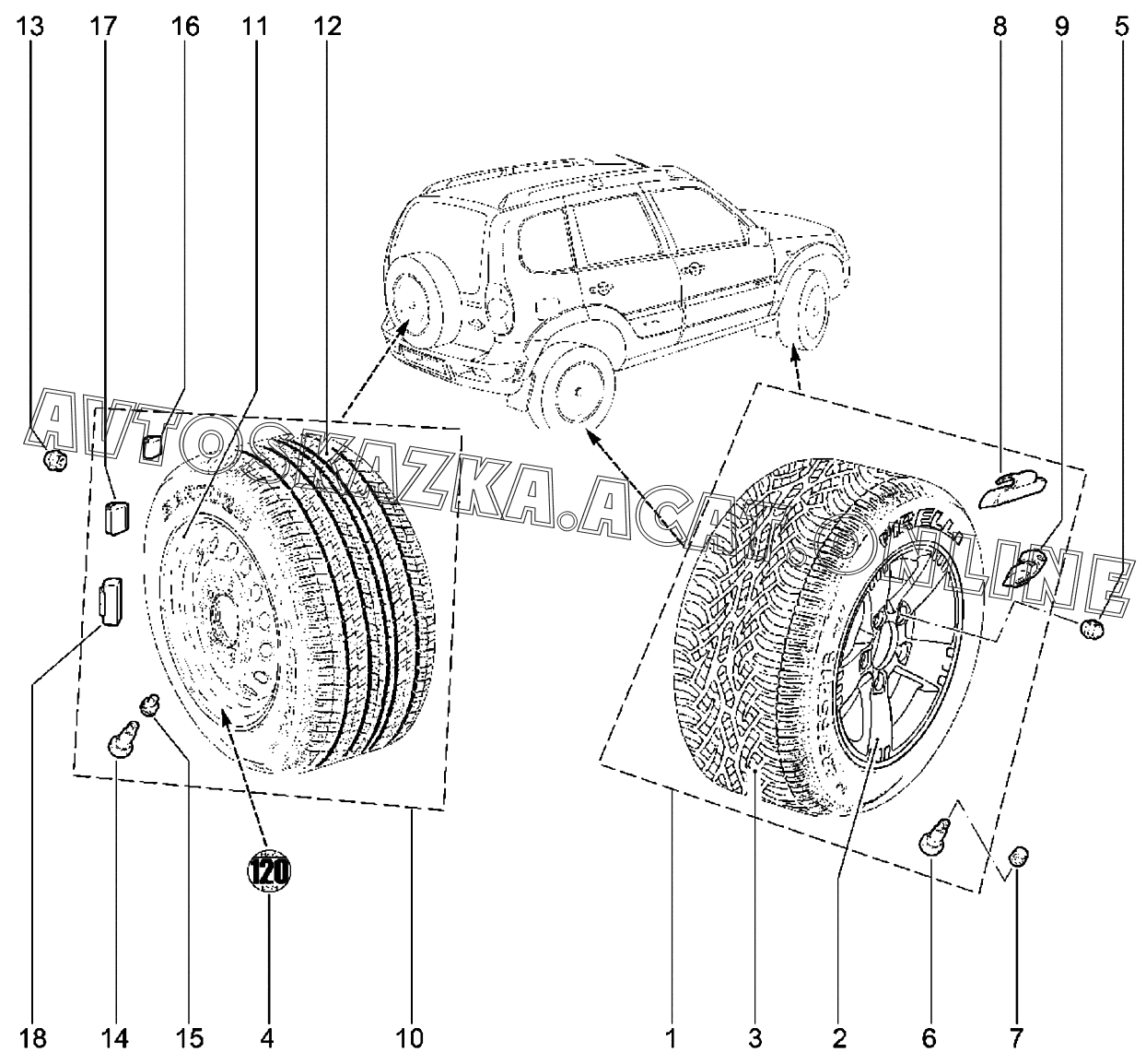 Колеса (GLS, GLC с 02.2009) ВАЗ 2123 Chevrolet Niva (2123 Chevrolet Niva)