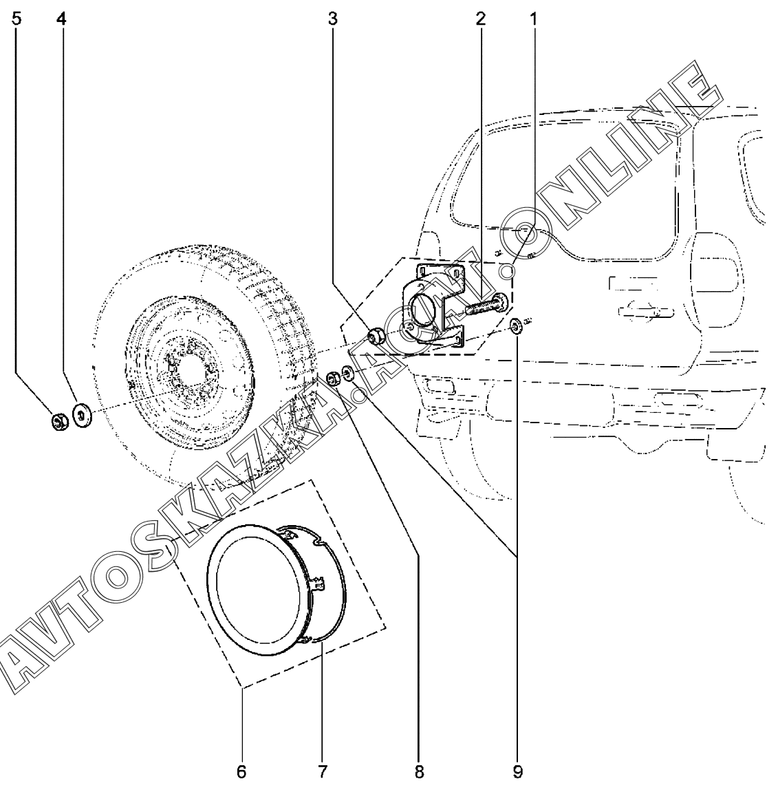 Держатель запасного колеса ВАЗ 2123 Chevrolet Niva (2123 Chevrolet Niva)