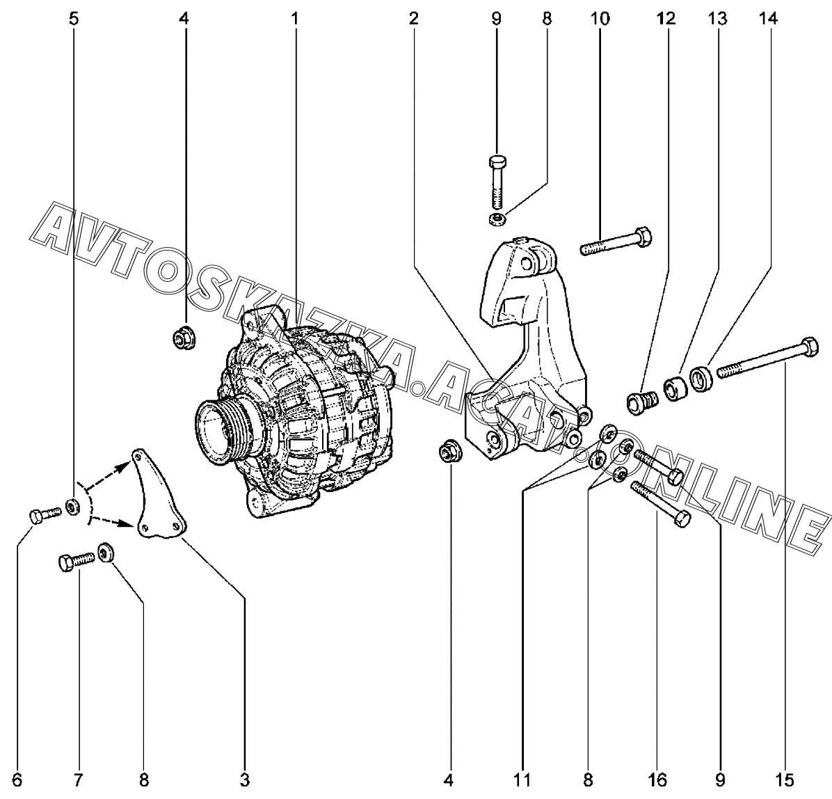 | Название детали: | Кронштейн генератора |