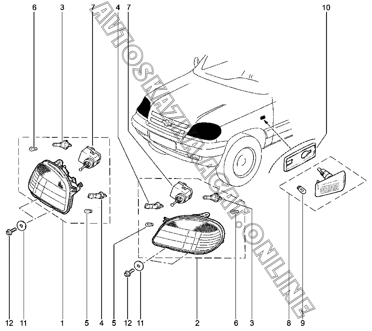Приборы световые передние (до 03.2009) ВАЗ 2123 Chevrolet Niva (2123 Chevrolet Niva)