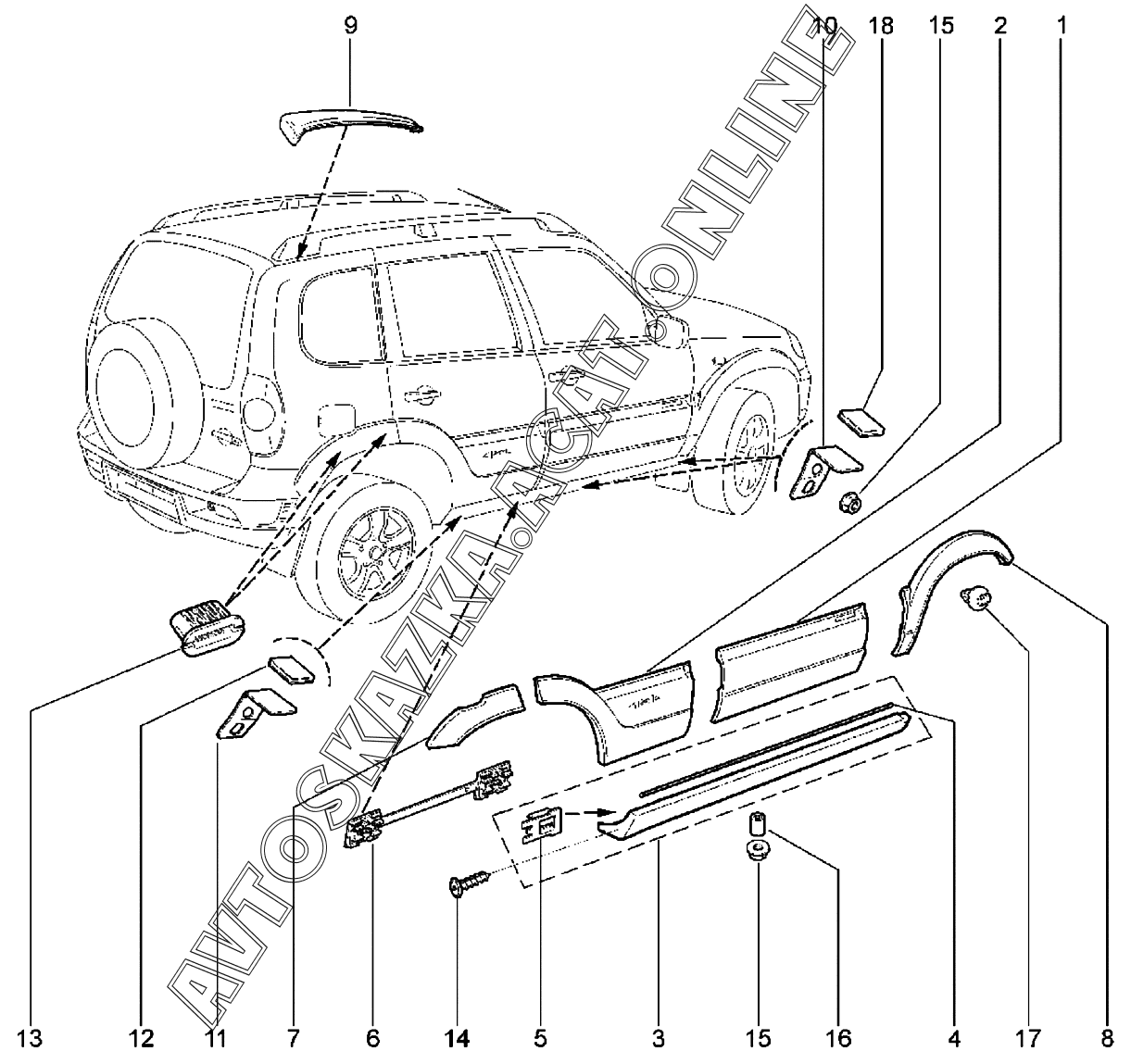 Молдинги (с 03.2009) ВАЗ 2123 Chevrolet Niva (2123 Chevrolet Niva)