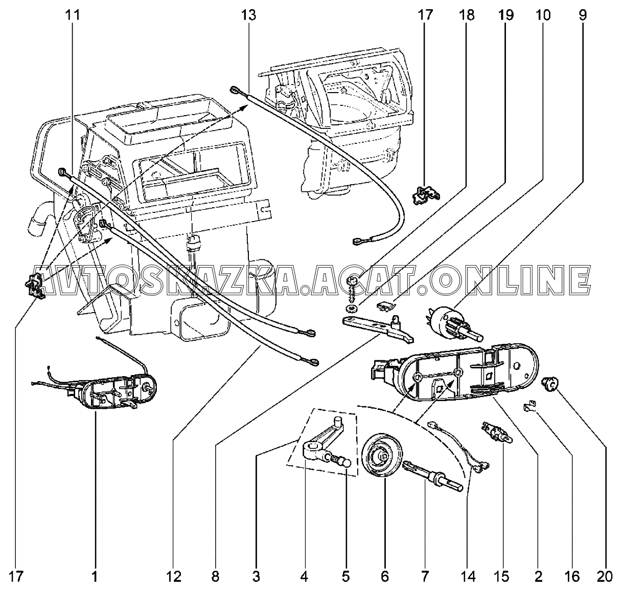 | Название детали: | Рычаги управления отопителем в сборе |