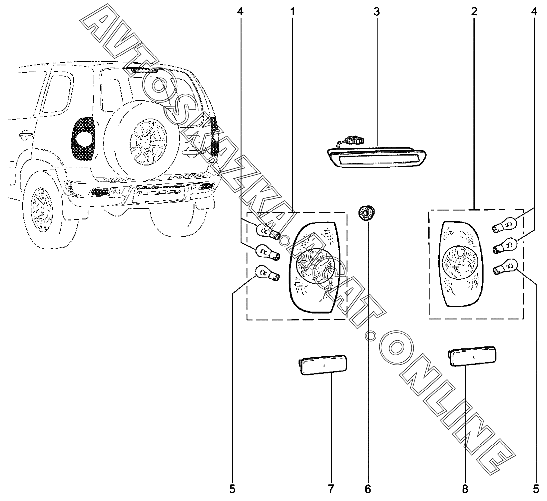 Фонари задние (до 12.2020) ВАЗ 2123 Niva Travel (2123 Niva Travel (Classic, Comfort, Comfort Off-road, Luxe, Luxe Off-road))