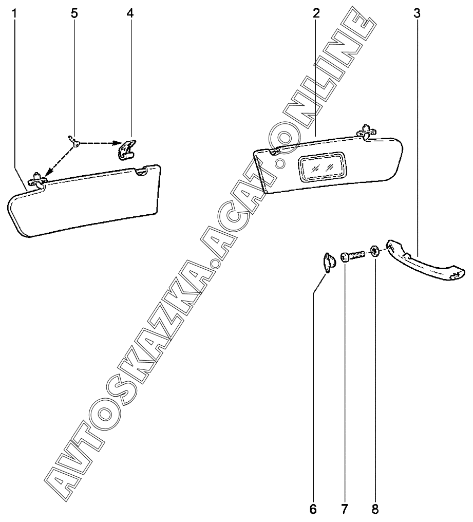 | Название детали: | Козырек противосолнечный правый |