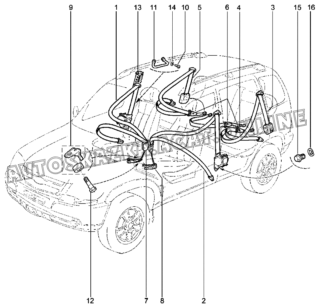 Ремни безопасности ВАЗ 2123 Niva Travel (2123 Niva Travel (Classic, Comfort, Comfort Off-road, Luxe, Luxe Off-road))