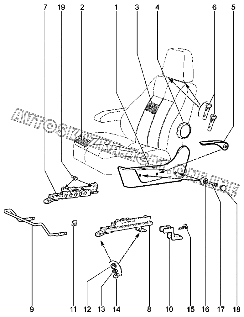 | Название детали: | Салазки переднего левого сиденья внутренние |