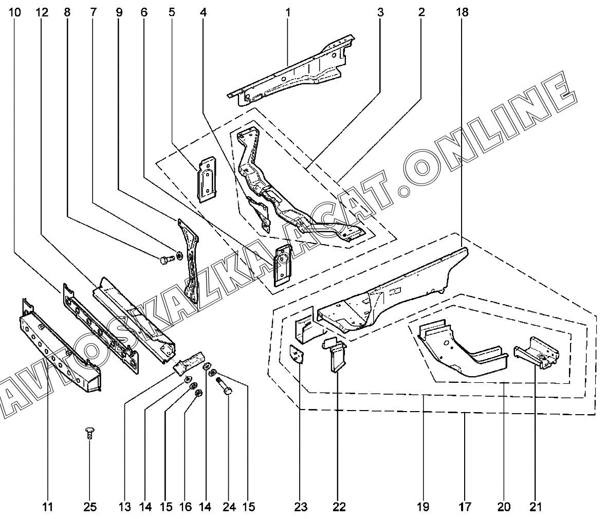 Каркас передка (до 12.2020) ВАЗ 2123 Niva Travel (2123 Niva Travel (Classic, Comfort, Comfort Off-road, Luxe, Luxe Off-road))