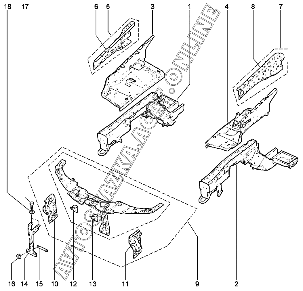 Каркас передка (с 12.2020) ВАЗ 2123 Niva Travel (2123 Niva Travel (Classic, Comfort, Comfort Off-road, Luxe, Luxe Off-road))