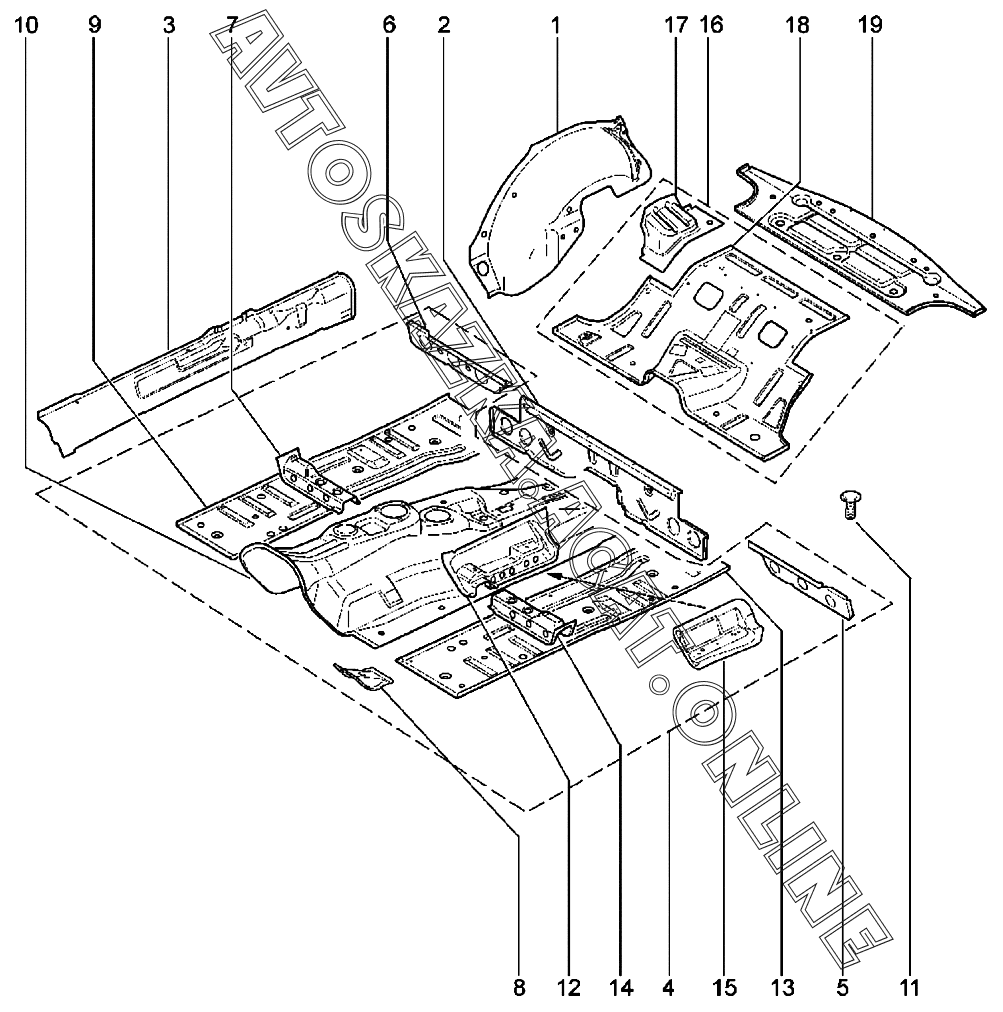 Пол кузова ВАЗ 2123 Niva Travel (2123 Niva Travel (Classic, Comfort, Comfort Off-road, Luxe, Luxe Off-road))