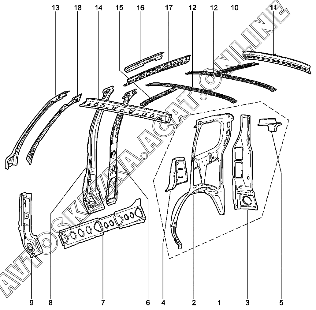 Каркас боковины и крыши (до 12.2020) ВАЗ 2123 Niva Travel (2123 Niva Travel (Classic, Comfort, Comfort Off-road, Luxe, Luxe Off-road))