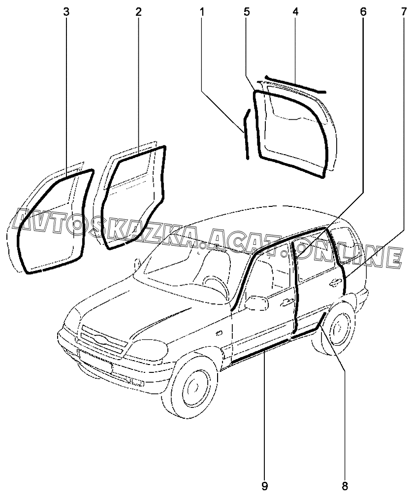 Уплотнители дверей ВАЗ 2123 Niva Travel (2123 Niva Travel (Classic, Comfort, Comfort Off-road, Luxe, Luxe Off-road))