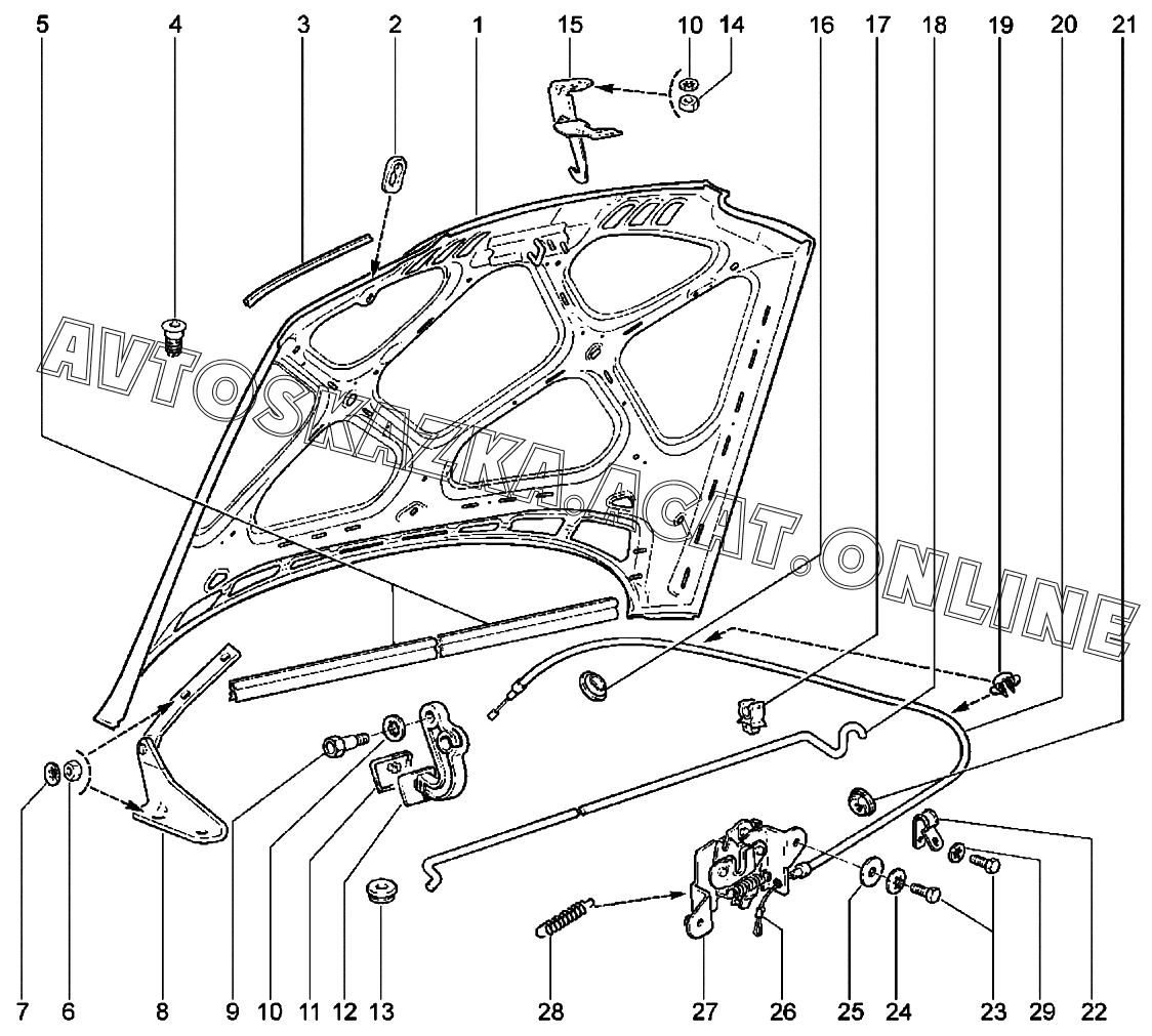 | Название детали: | Капот в сборе (катафорез) |