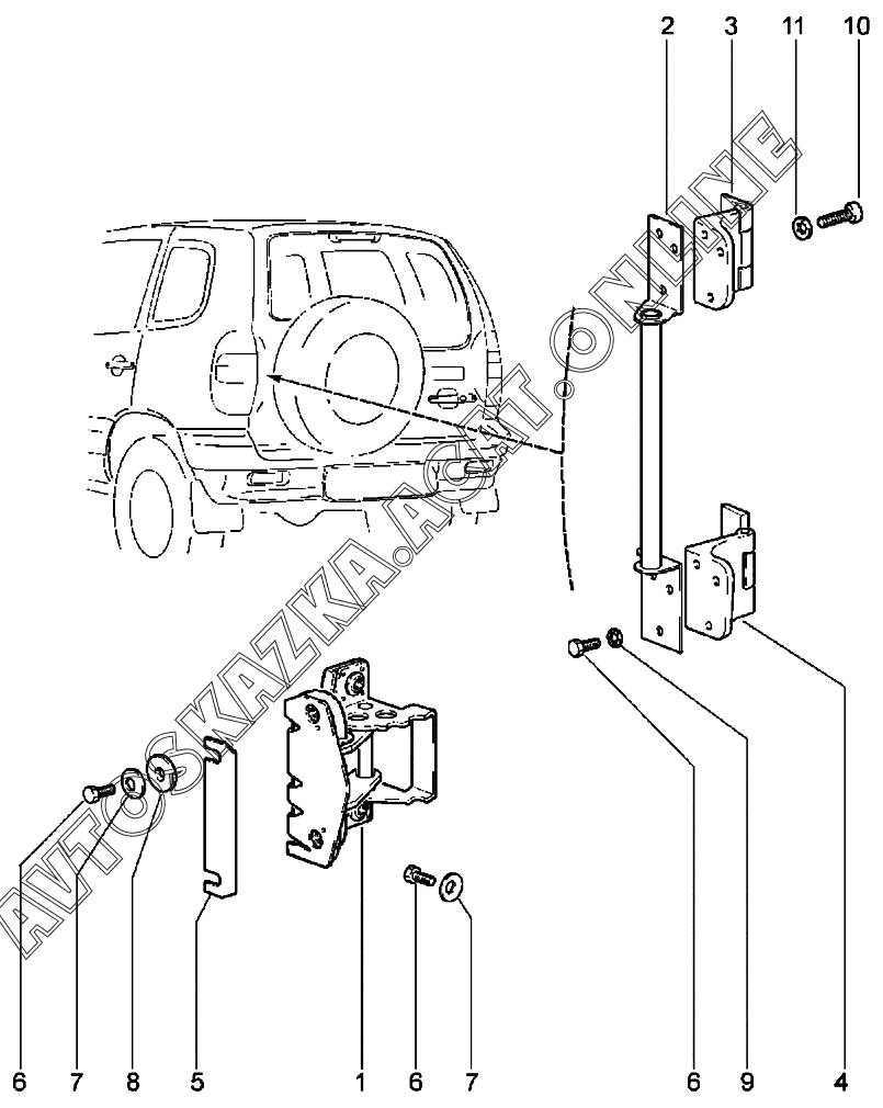 Навеска двери задка ВАЗ 2123 Niva Travel (2123 Niva Travel (Classic, Comfort, Comfort Off-road, Luxe, Luxe Off-road))