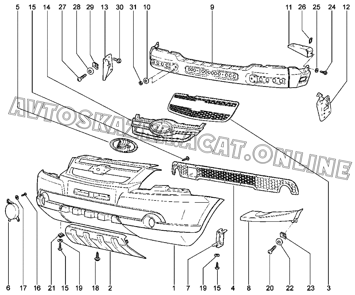 Бампер передний (до 12.2020) ВАЗ 2123 Niva Travel (2123 Niva Travel (Classic, Comfort, Comfort Off-road, Luxe, Luxe Off-road))