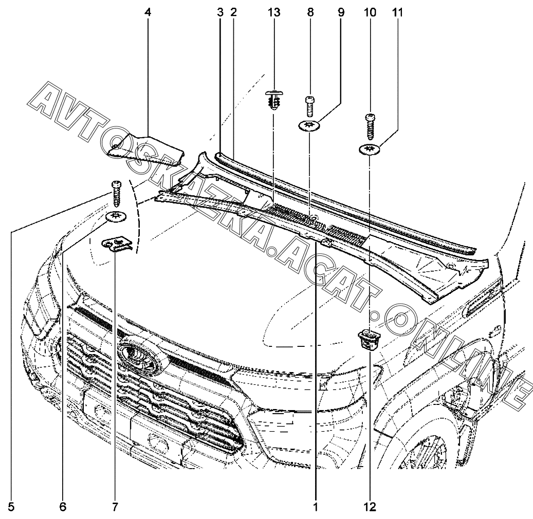 Накладка облицовочная ветрового стекла ВАЗ 2123 Niva Travel (2123 Niva Travel (Classic, Comfort, Comfort Off-road, Luxe, Luxe Off-road))