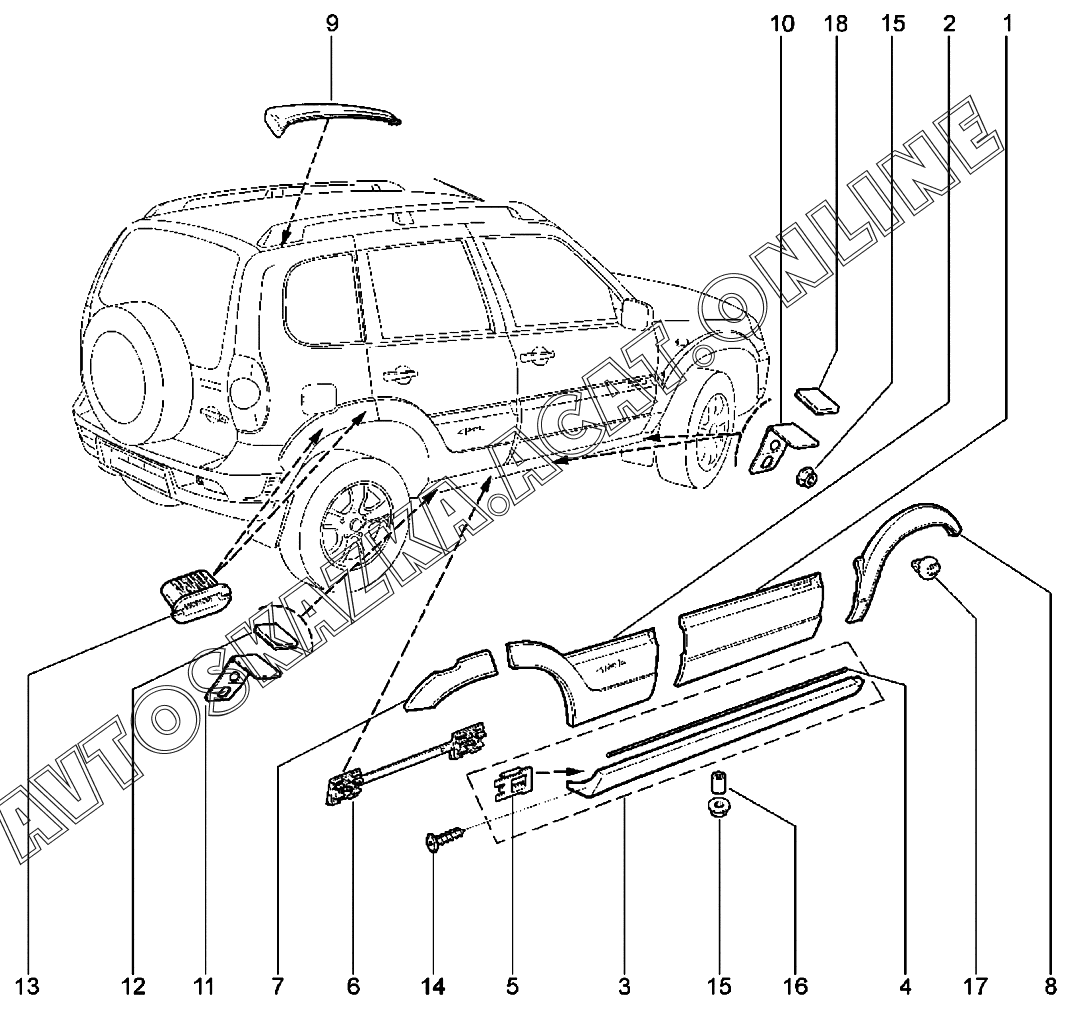 Молдинги (до 12.2020) ВАЗ 2123 Niva Travel (2123 Niva Travel (Classic, Comfort, Comfort Off-road, Luxe, Luxe Off-road))