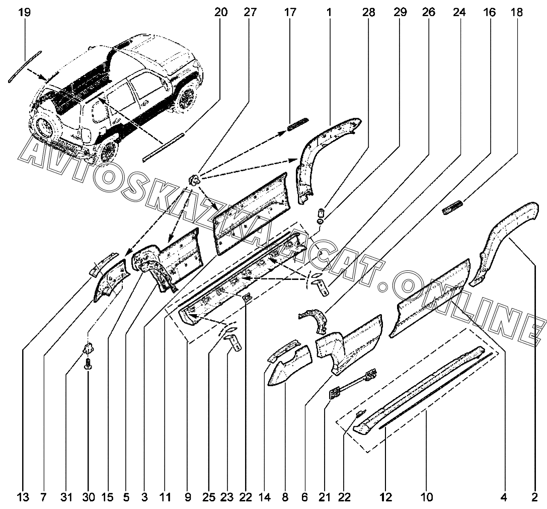 Молдинги (с 12.2020) ВАЗ 2123 Niva Travel (2123 Niva Travel (Classic, Comfort, Comfort Off-road, Luxe, Luxe Off-road))