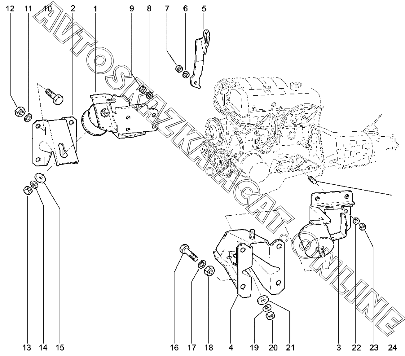 | Название детали: | Кронштейн левый с подушкой в сборе |