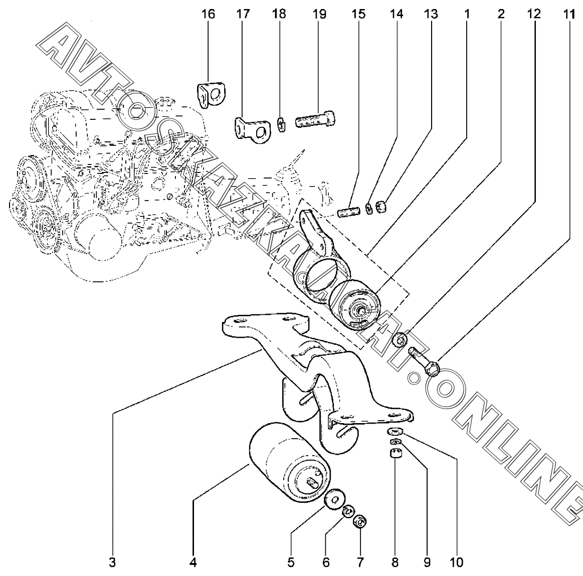 Подвеска двигателя задняя ВАЗ 2121 Niva 4х4 (2121 Niva 4х4 Legend, 2121 Niva 4х4 Bronto)