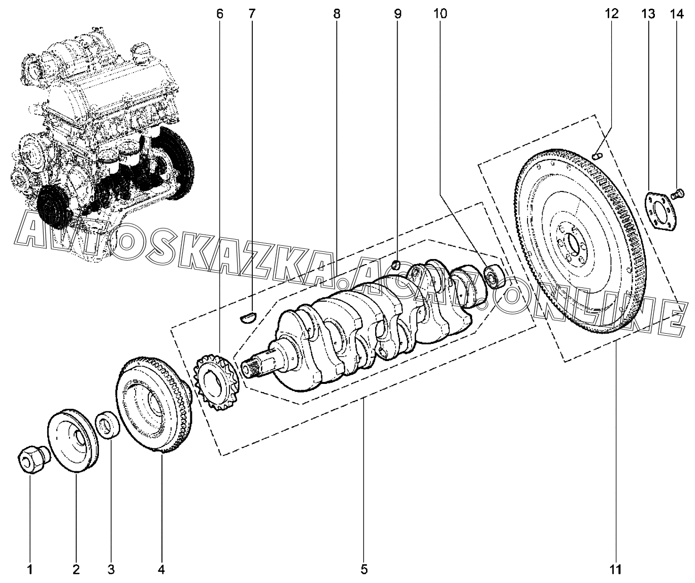 Вал коленчатый (автомобиль без КУ) ВАЗ 2121 Niva 4х4 (2121 Niva 4х4 Legend, 2121 Niva 4х4 Bronto)