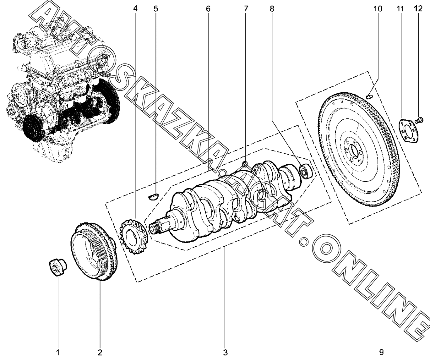 Вал коленчатый (автомобиль с КУ) ВАЗ 2121 Niva 4х4 (2121 Niva 4х4 Legend, 2121 Niva 4х4 Bronto)