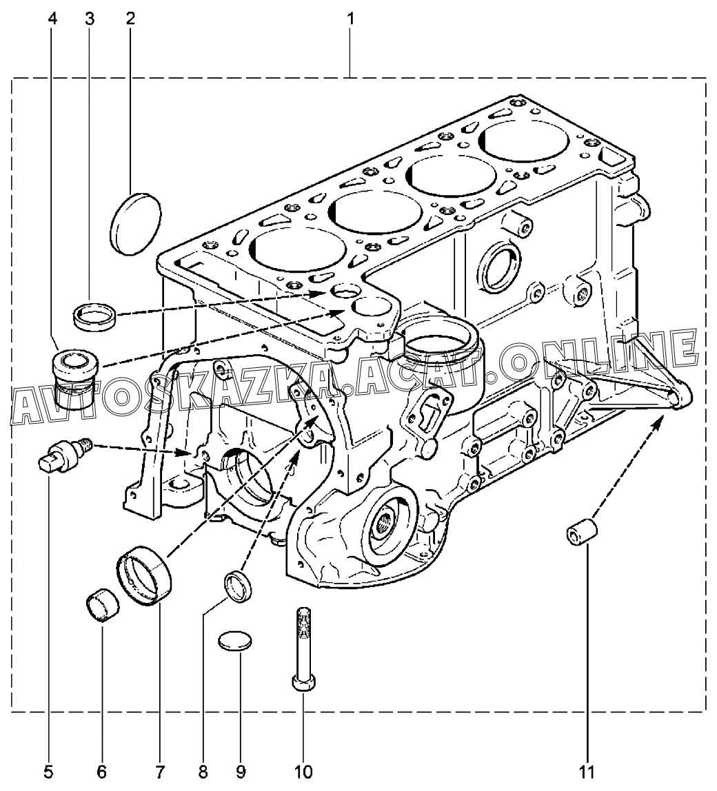 Блок цилиндров (деталировка) ВАЗ 2121 Niva 4х4 (2121 Niva 4х4 Legend, 2121 Niva 4х4 Bronto)