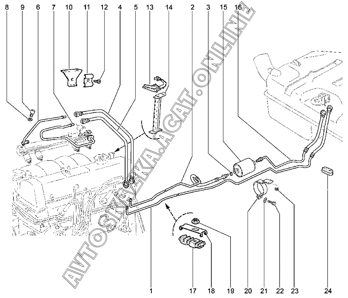 Трубопроводы топливные (21214) ВАЗ 2121 Niva 4х4 (2121 Niva 4х4 Legend, 2121 Niva 4х4 Bronto)