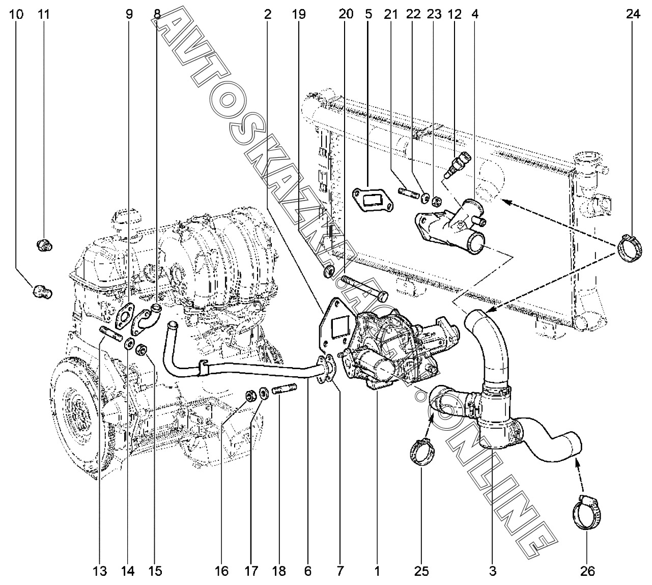Насос водяной и трубопроводы ВАЗ 2121 Niva 4х4 (2121 Niva 4х4 Legend, 2121 Niva 4х4 Bronto)