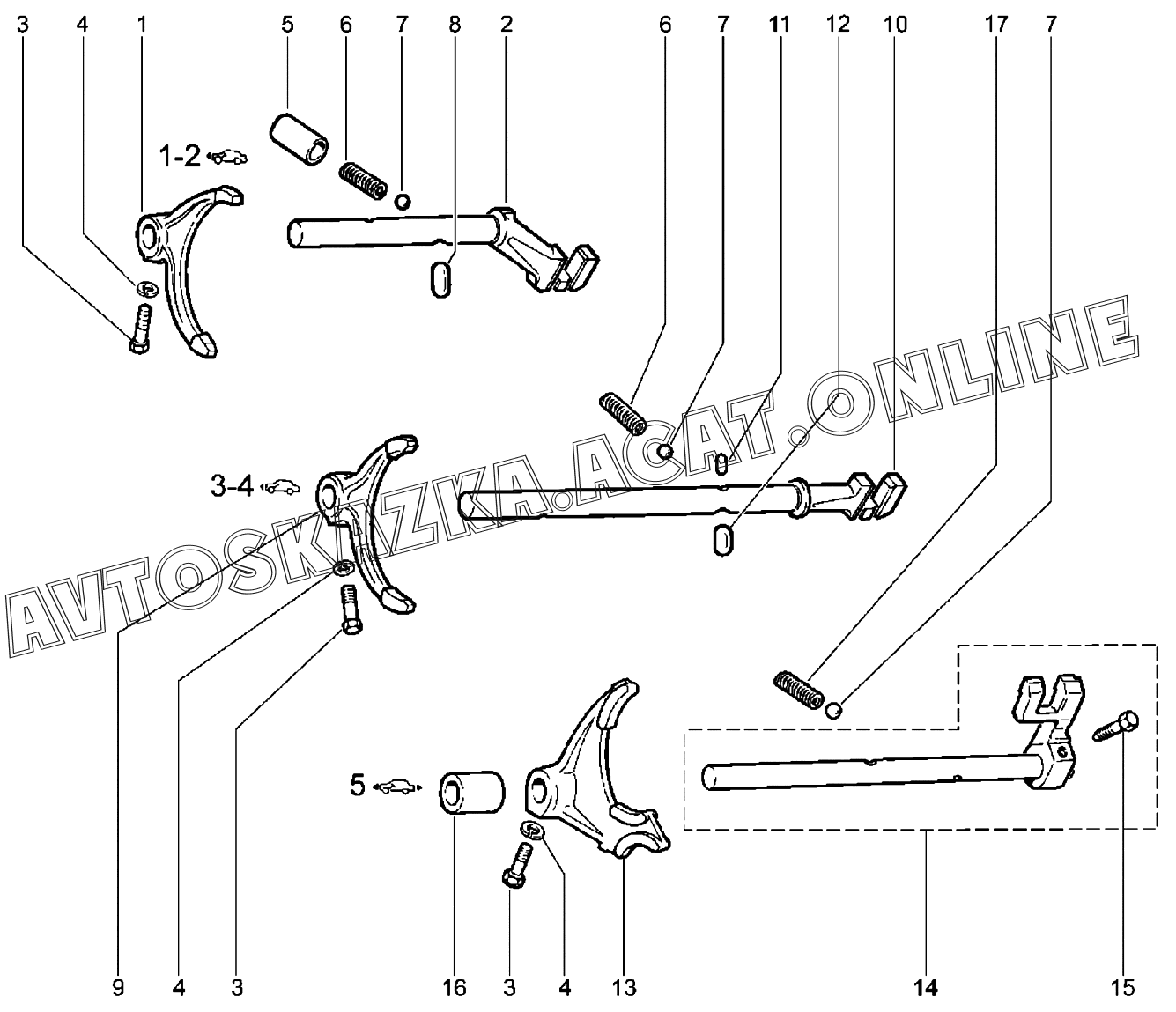 | Название детали: | Шток вилки 3-й и 4-й передачи |