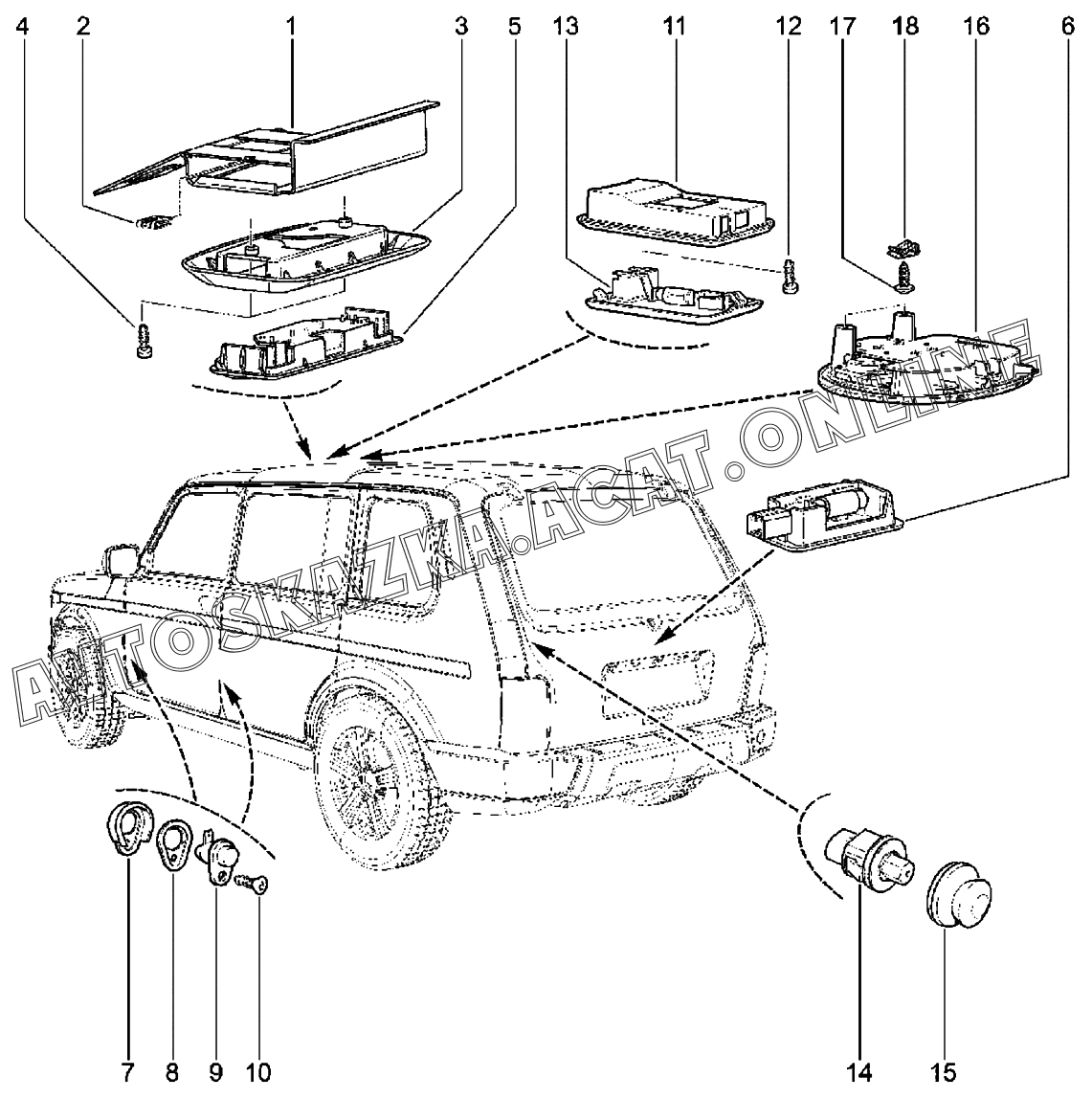 Освещение салона (2131) ВАЗ 2121 Niva 4х4 (2121 Niva 4х4 Legend, 2121 Niva 4х4 Bronto)