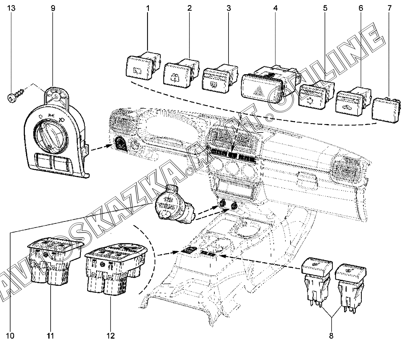 Переключатели (с 06.2019) ВАЗ 2121 Niva 4х4 (2121 Niva 4х4 Legend, 2121 Niva 4х4 Bronto)