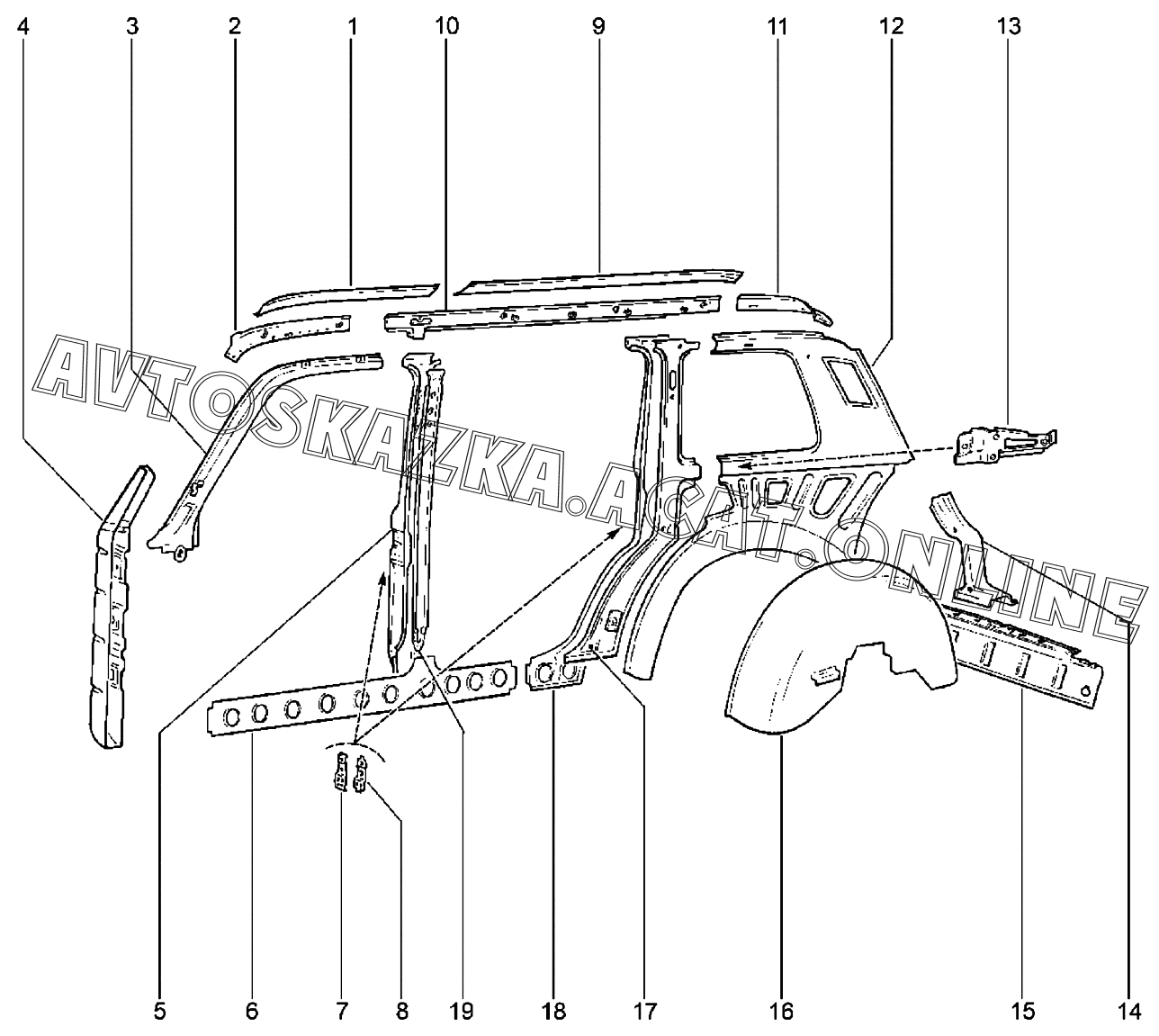 Каракас боковины и задка (2131) ВАЗ 2121 Niva 4х4 (2121 Niva 4х4 Legend, 2121 Niva 4х4 Bronto)