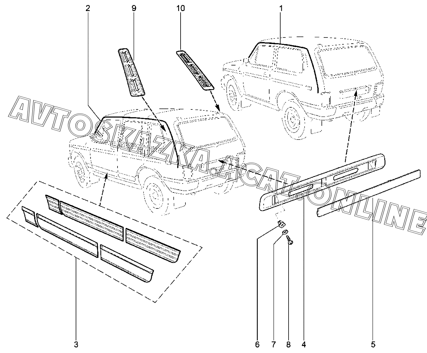 Накладки облицовочные ВАЗ 2121 Niva 4х4 (2121 Niva 4х4 Legend, 2121 Niva 4х4 Bronto)