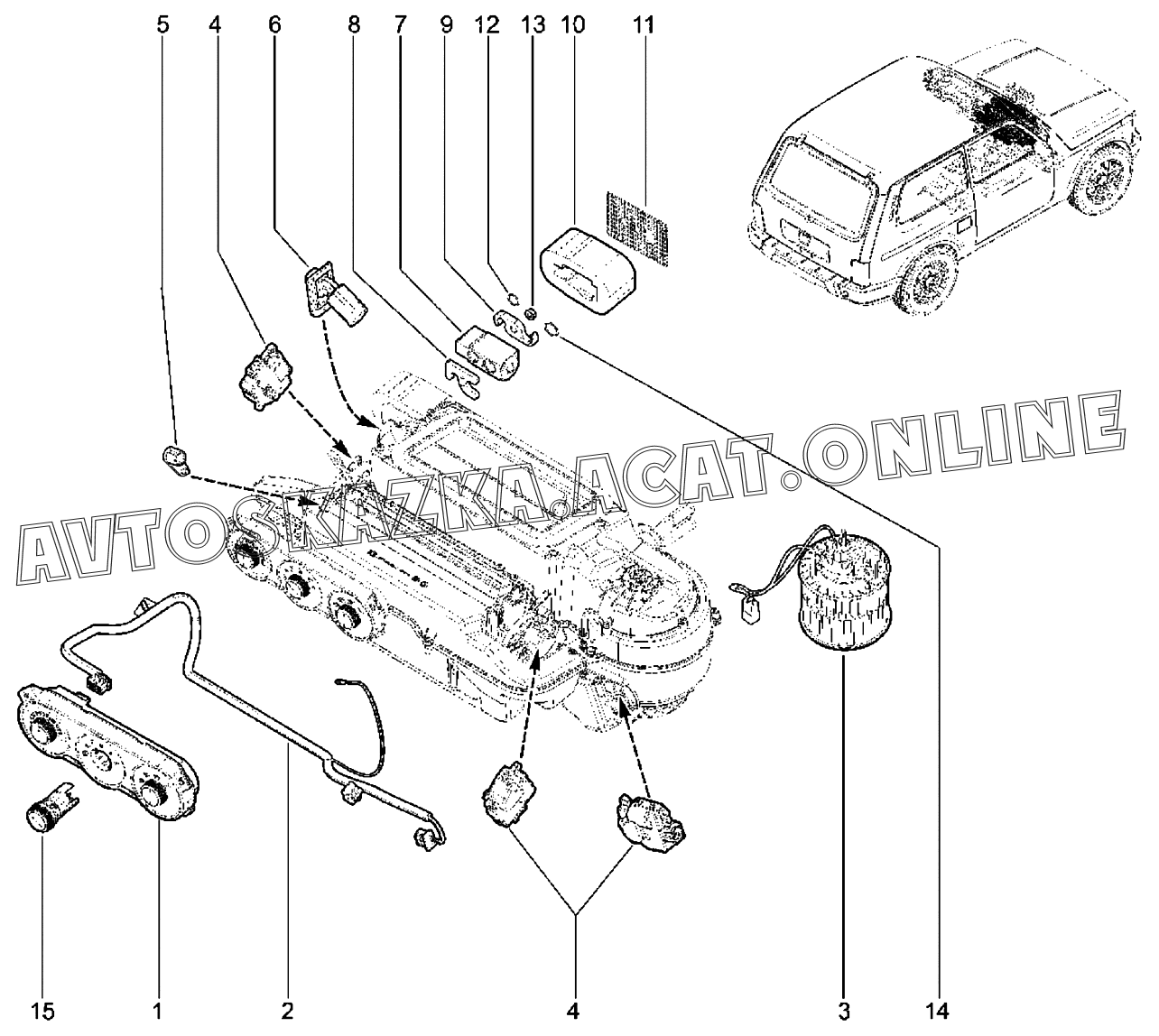 Отопитель с КУ (М6.2)(с 07.2019) ВАЗ 2121 Niva 4х4 (2121 Niva 4х4 Legend, 2121 Niva 4х4 Bronto)