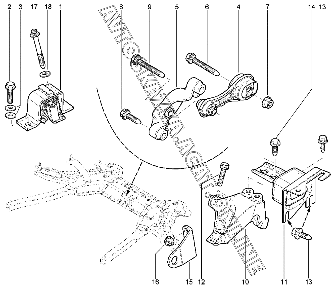 | Название детали: | Кронштейн задней опоры подвески двигателя |