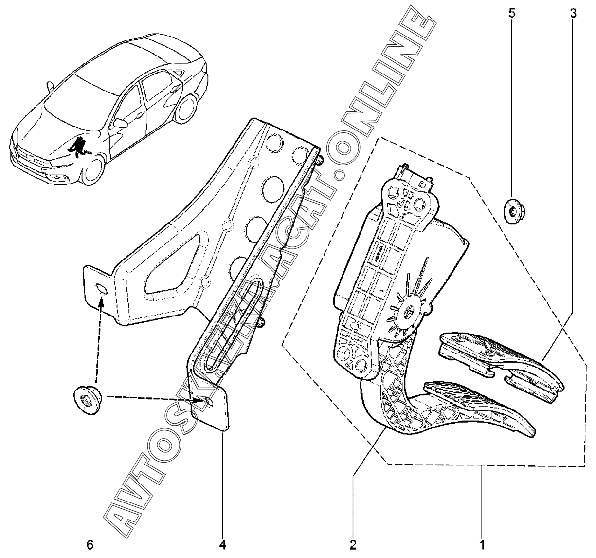 Педаль акселератора (BVM5, BVI5) ВАЗ Vesta (2180 Lada Vesta (седан, универсал, CROSS, SW, SW CROSS, CNG, SPORT))